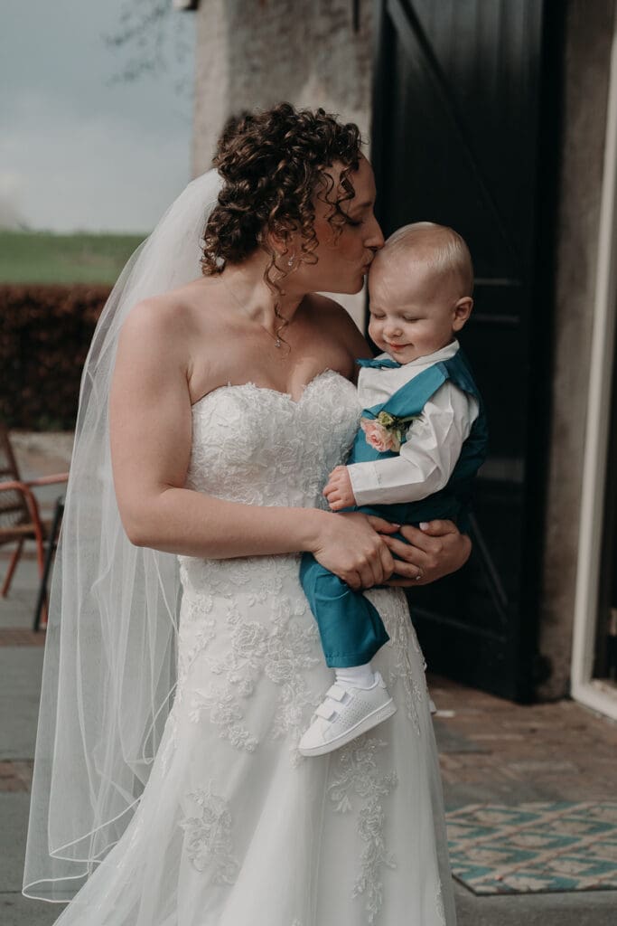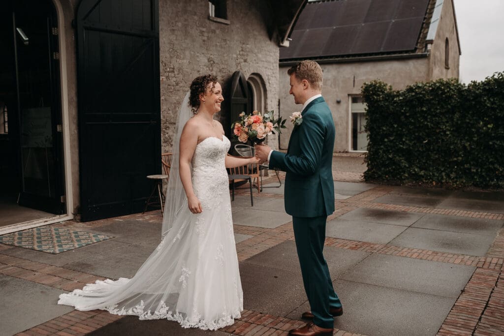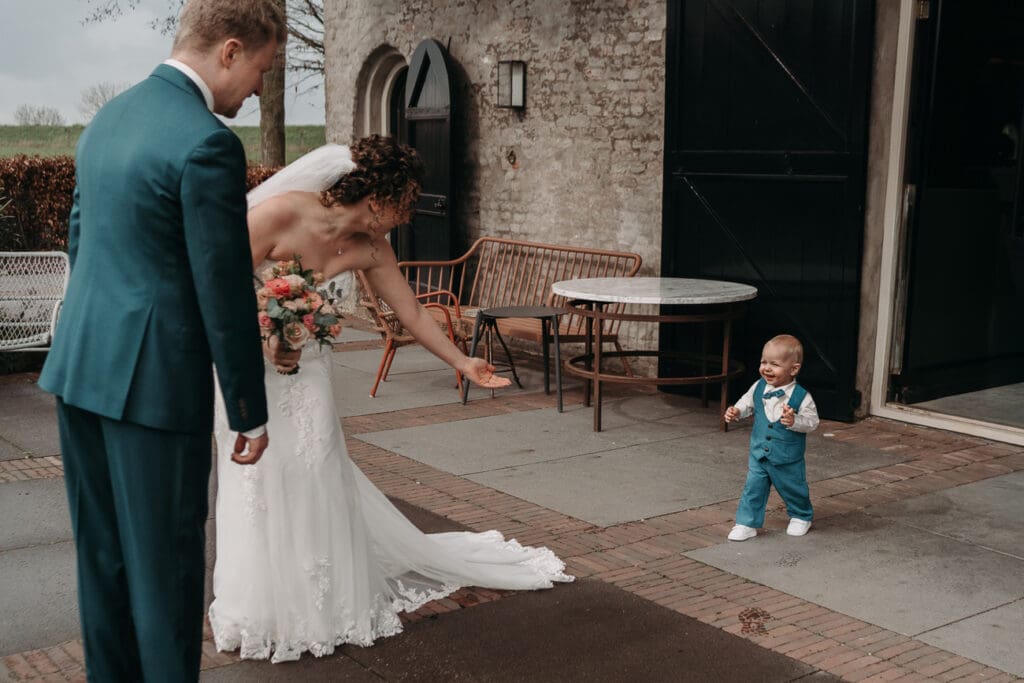 De first look vond plaats buiten op het terras van VRIJ Culemborg. Puur en vol emotie, precies zoals je hoopt. Daarna was het tijd voor de bruid om hun zoontje te zien.