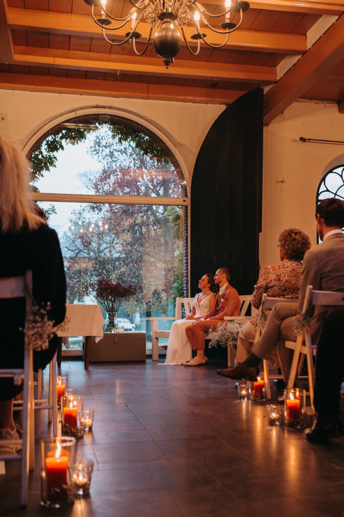 Een van de grootste voordelen van een winterbruiloft is de intimiteit. Gasten zijn minder gehaast, blijven vaker de hele dag en de sfeer is vaak nog meer persoonlijker. Geen buitenprogramma’s die uitlopen, maar samen rond lange tafels, met warme drankjes en veel aandacht voor elkaar.